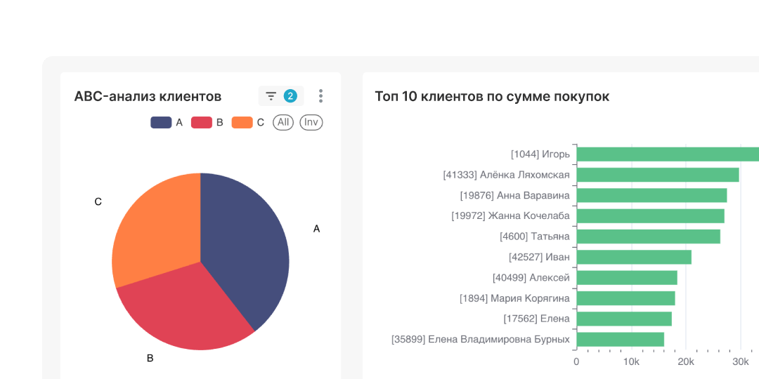 Собирайте любые аналитические отчёты в BI-конструкторе. Анализируйте данные под разными углами. Оценивайте эффективностькак отдела, так и отдельного специалиста